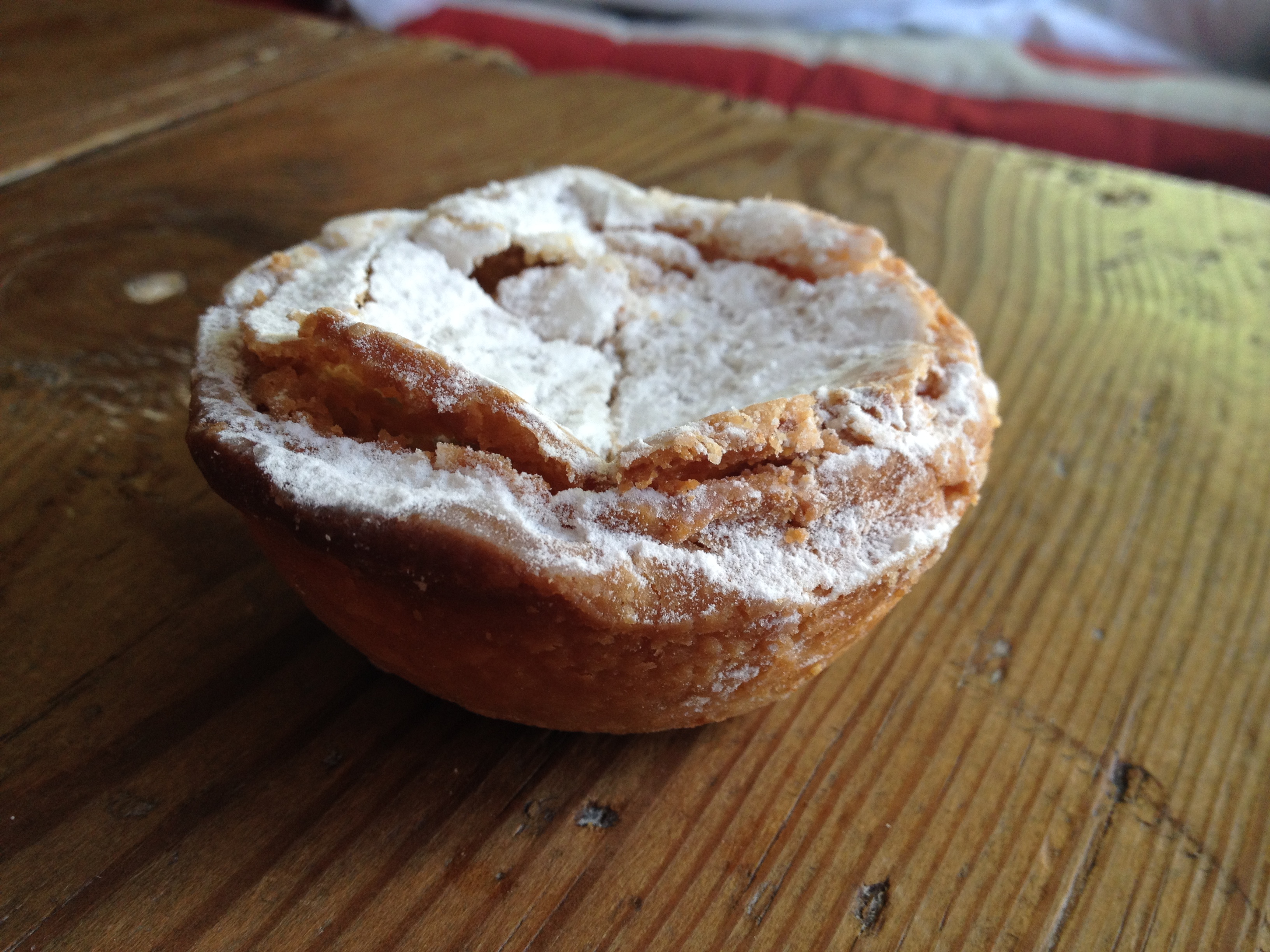 A delicious handmade artisanal pastry cup with a flakey, sugar-coated crust and filled with a sweet egg center. The crust is buttery, sugary, and surprisingly crunchy, while the inside is soft and springy. The result is what I would describe as a cross between a butter tart and a custard pie—the sum of which is even better than either of its parts.