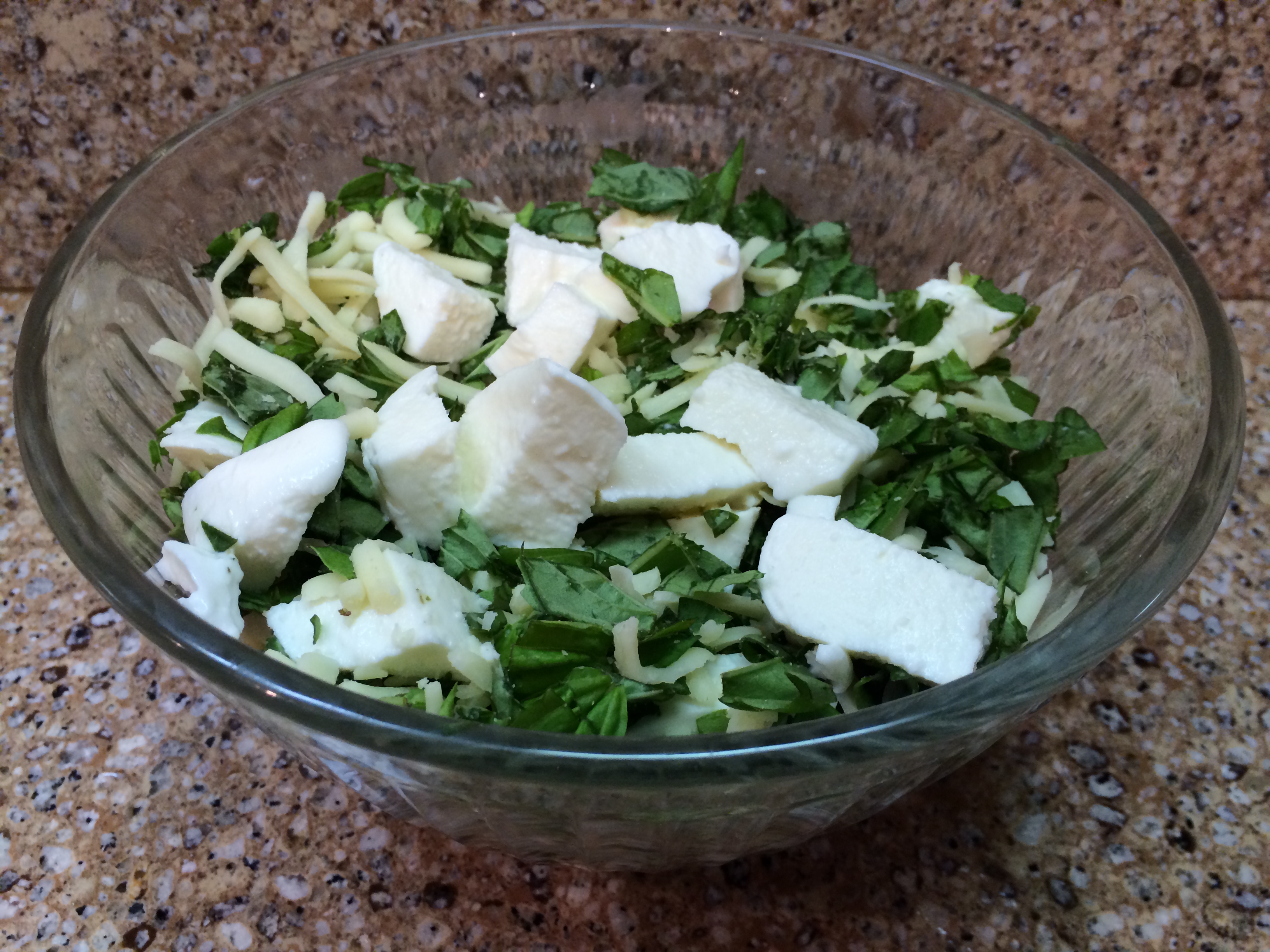 7. Toss the cheeses together with the basil in a medium-sized bowl.