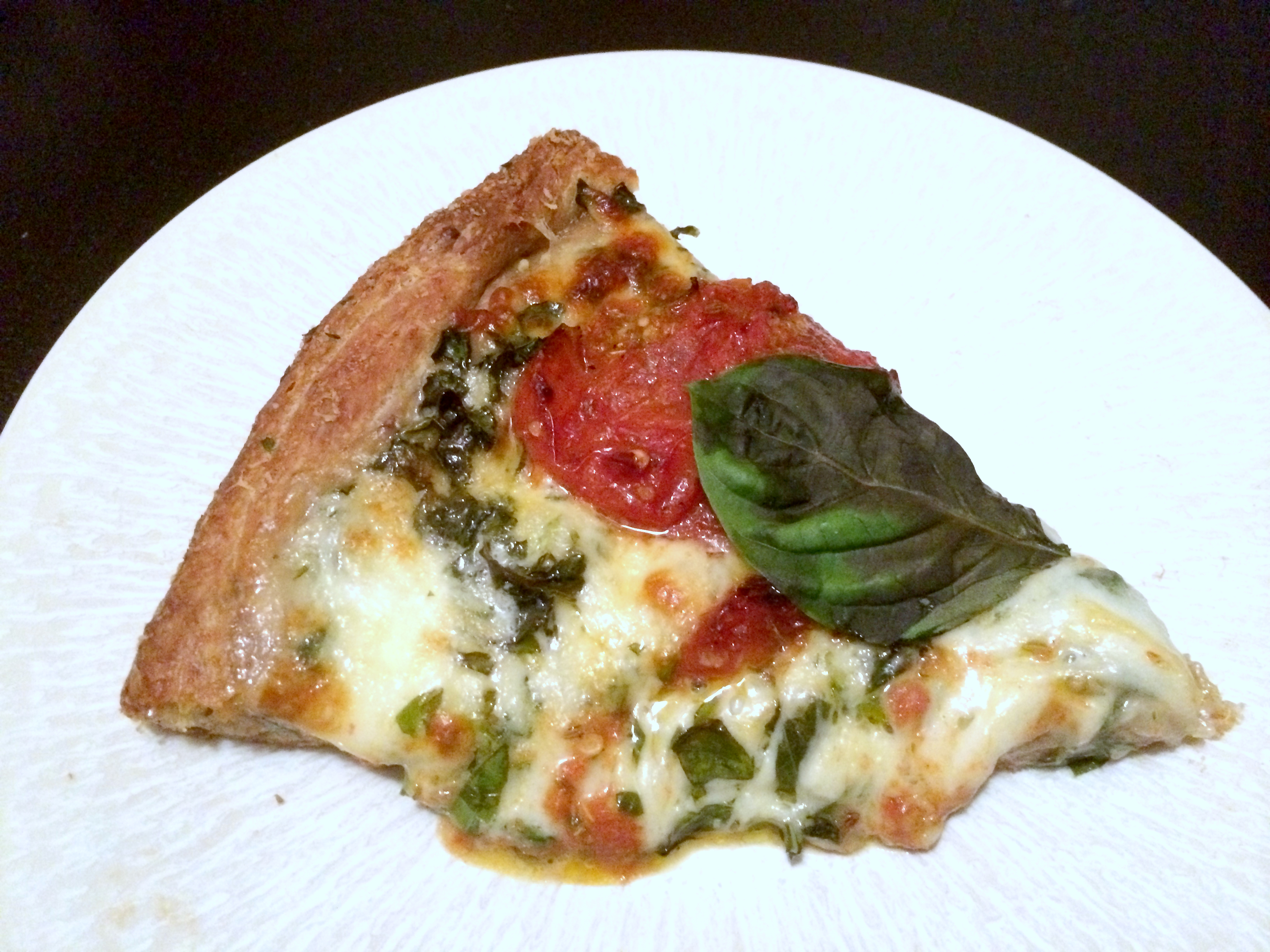 11. Garnish with the basil leaves, slice and eat!