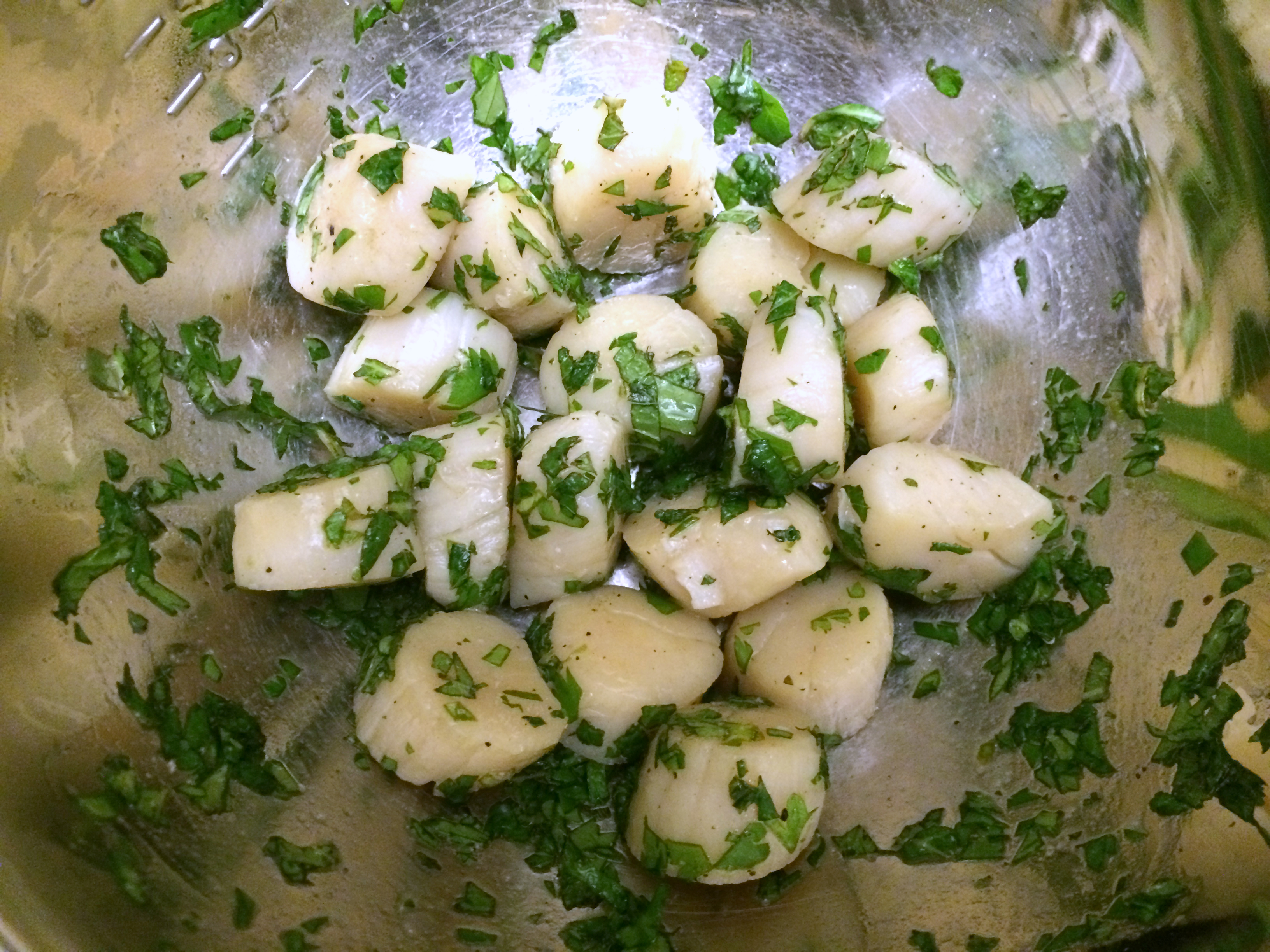 3. Sautée until centers turn opaque (2 minutes per side for medium-sized scallops).
