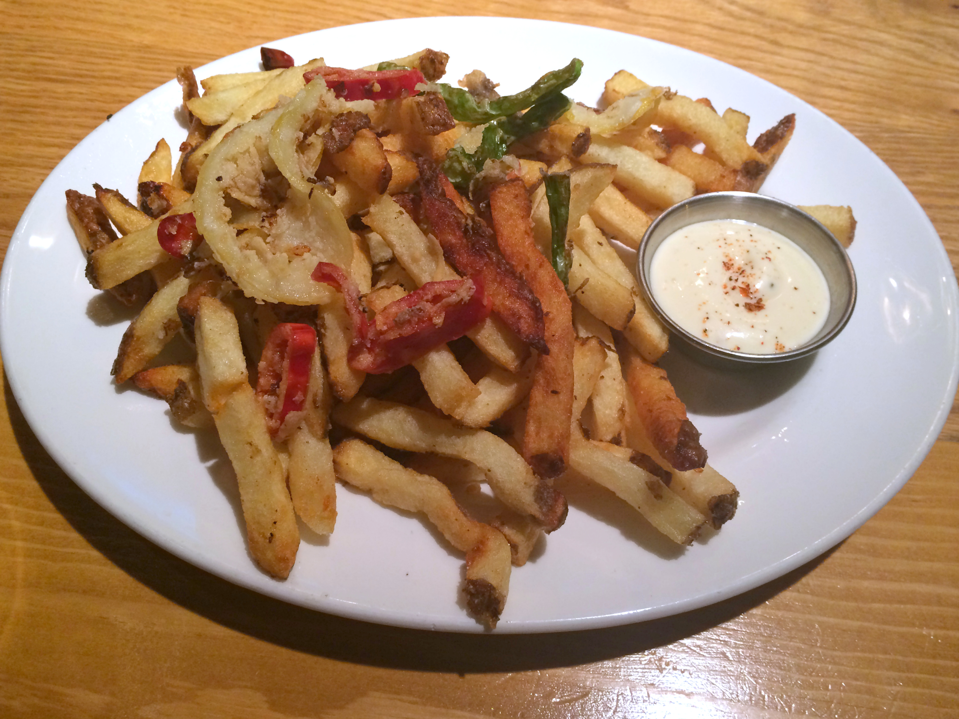 Hand-cut Kennebec french fries with crispy lemons, spicy red chills, and shishito peppers.
