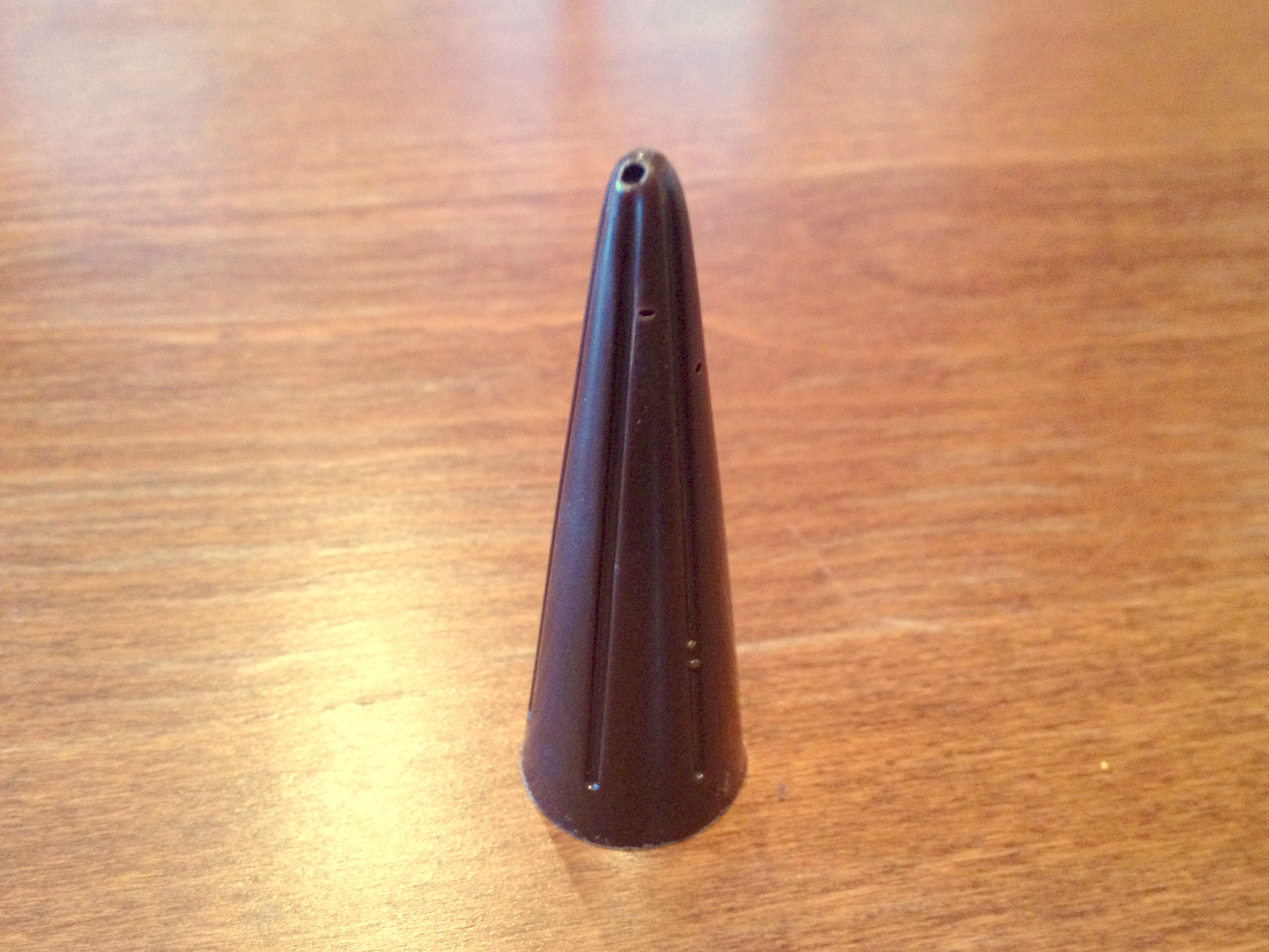 Insanely smooth and creamy dark chocolate ganache infused with Arbequina Spanish olive oil and encased in a ridged dark chocolate cone.