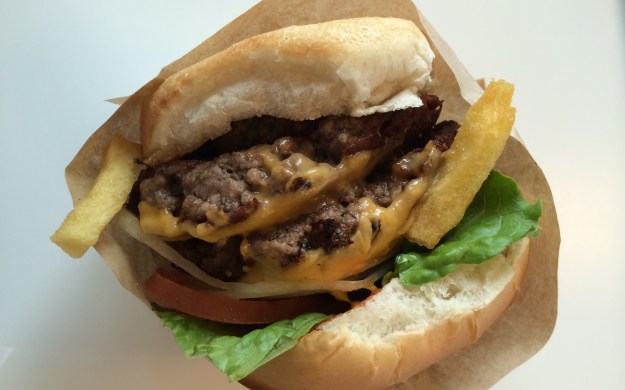 My favourite burger on earth is topped with deep-fried jalapeño peppers, so I went with the ‘Holy Smokes’, a double cheeseburger with panko-crusted deep-fried jalapeños and all the fixings.